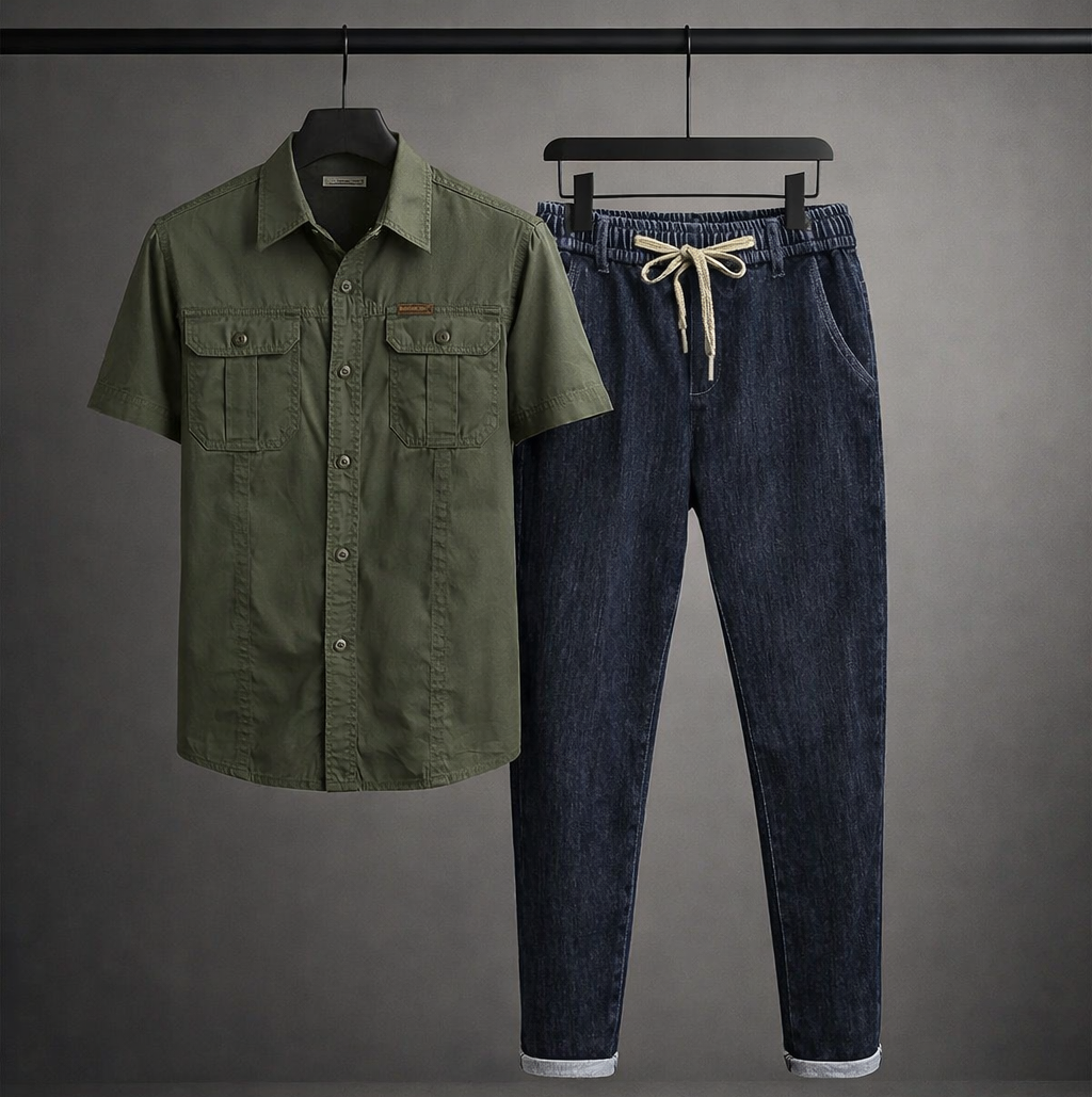 Elevate your everyday style with the Frontier Dusk Utility Shirt & Denim Set — a perfect fusion of rugged charm and modern sophistication. Designed for the man who values both comfort and statement, this coordinated set delivers a bold, refined look that transitions effortlessly from casual outings to elevated streetwear moments.